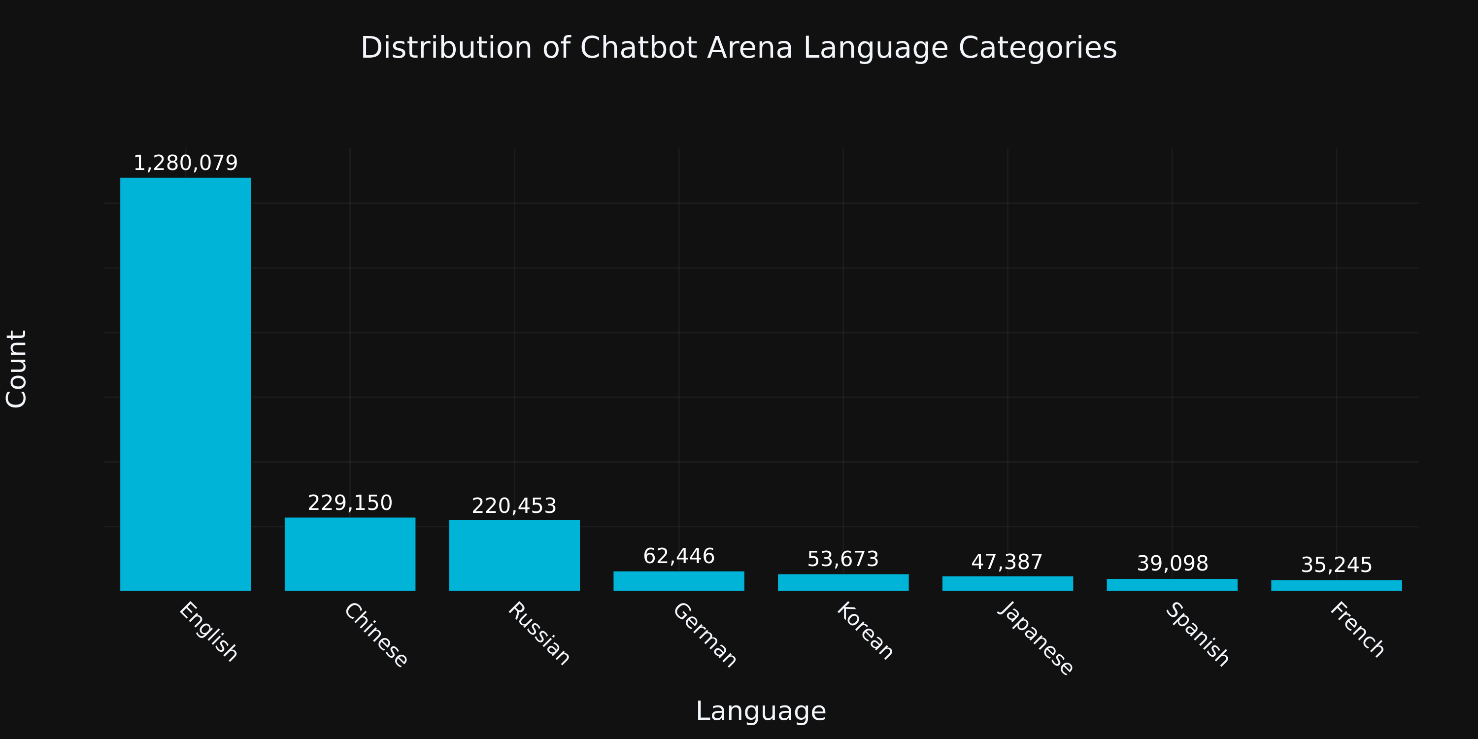 Figure 8. Number of Chatbot Arena battles in each of the current set of language categories.