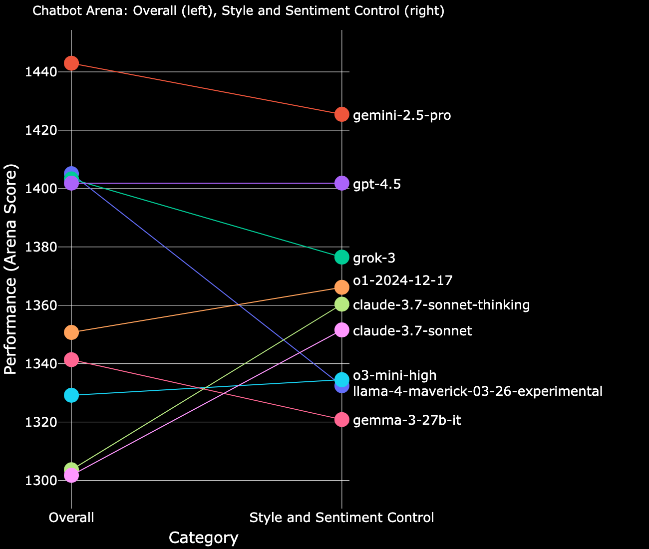 Figure 1. Overall Chatbot Arena ranking vs Style and Sentiment Control ranking